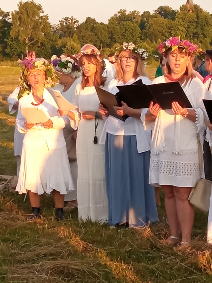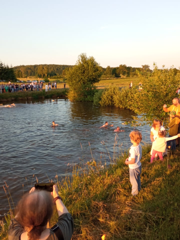 Poland celebrated the traditional “Noc Kupały” or “Sobótki” Midsummer festival on June 26. Traditionally, girls wear wreaths of flowers, known as ‘wianki’, and sing ritual songs to boys across a stretch of water, such as a lake or river. This signifies the purifying of the waters and is associated with the Feast of St. John the Baptist as well as older pagan traditions. At the end of the singing, the girls cast their ‘wianki’ into the water and the boys swim to collect them. In the village of Frączki, Warmia, the singers were members of Cantemus, a ladies’ singing group and local musicians Krótka Polka. The event was organised by Frączki’s Nasza Wieś association.
